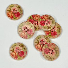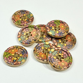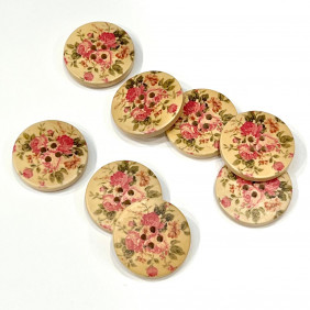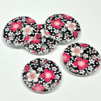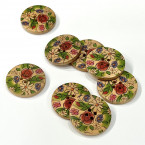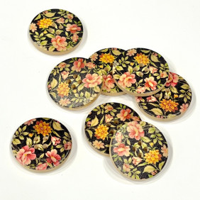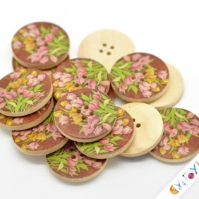 Набор из 5 деревянных пуговиц 30мм с цветами