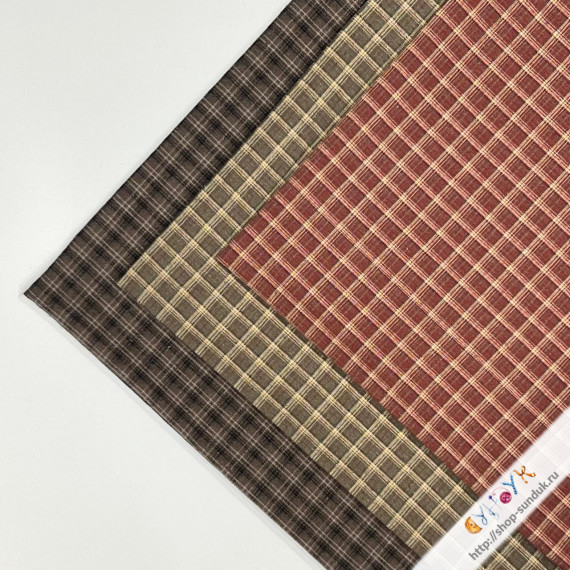 Хлопок фактурный "Клетка" кофейная