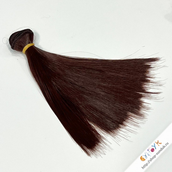 Искусственные прямые трессы каштанового цвета и отличного качества, шелковистые, без выраженного синтетического блеска волос, очень приближены к натуральным.