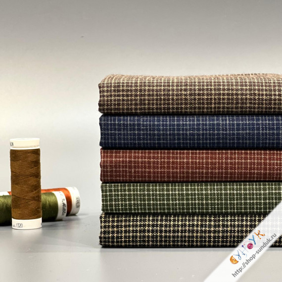 Хлопок фактурный "Клетка мелкая" на кирпичном