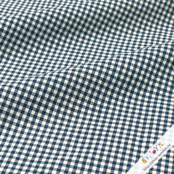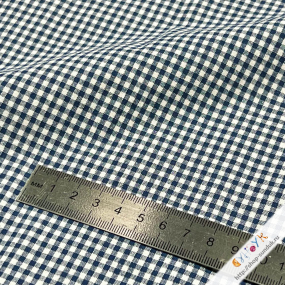 Тонкий хлопок в клеточку (двухсторонний) синий