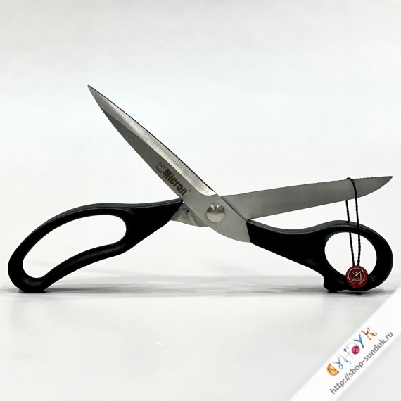 Профессиональные закройные ножницы изготовлены из закаленной нержавеющей стали. Ножницы самозатачивающиеся, лезвия с лазерной заточкой обеспечивают отличное качество резки. Ножницы эргономичны, удобны в работе, долговечны. Каждая единица ножниц, выпускаемая фабрикой, проходит индивидуальную проверку на качество. Предназначены для раскроя ткани и других работ при шитье.