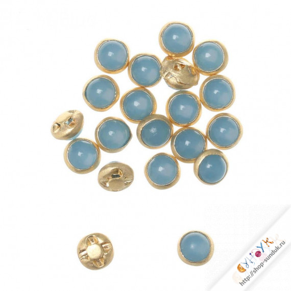 Пуговицы металлические 5мм жемчуг бирюзовый в золоте