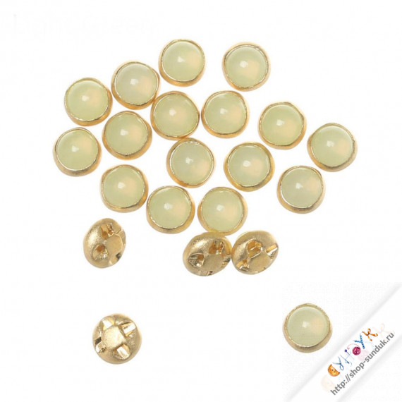 Пуговицы металлические 5мм жемчуг светло-желто-зеленый в золоте