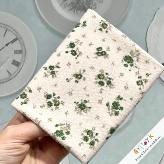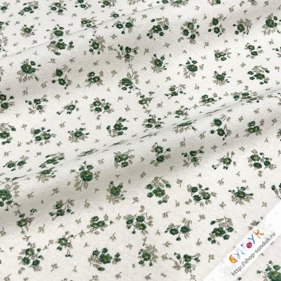 Баечка (теплый хлопок) зеленые цветочки на молочном