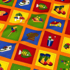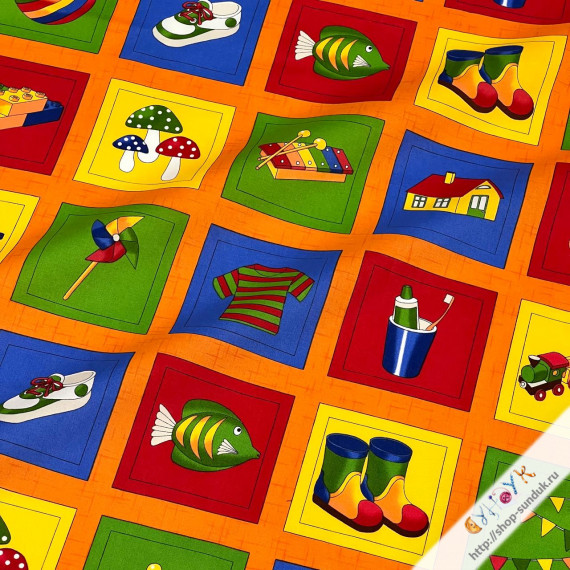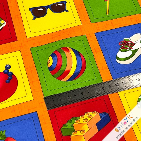 Размер отреза 60х110см Купон содержит в себе 66 мотивов ( размер каждого приблизительно 8х8см) Плотность 140 гр/м2 Состав 100% хлопок Дания. Stof