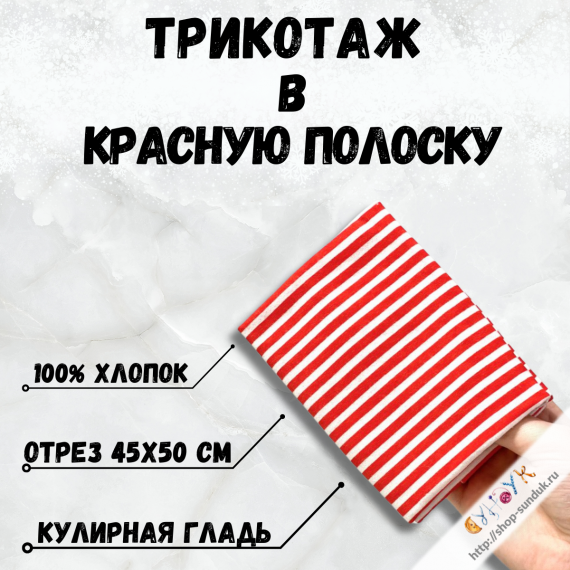 Размер отреза 40х50см Ширина полоски 3-4 мм Состав 100% хлопок