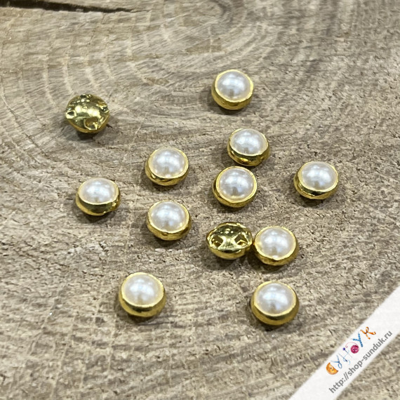 Пуговки на потайной ножке Диаметр 6-7мм Белые в золотой оправе Цена указана за 1шт