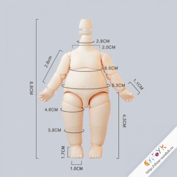 Тело Оbitsu 11 pink (пухляш) Высота 8,8см В комплекте подставка, отвертка и 3 пары кистей с различными жестами