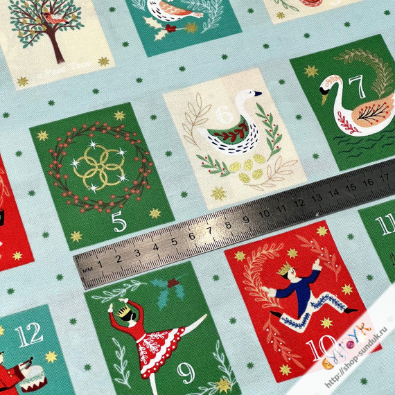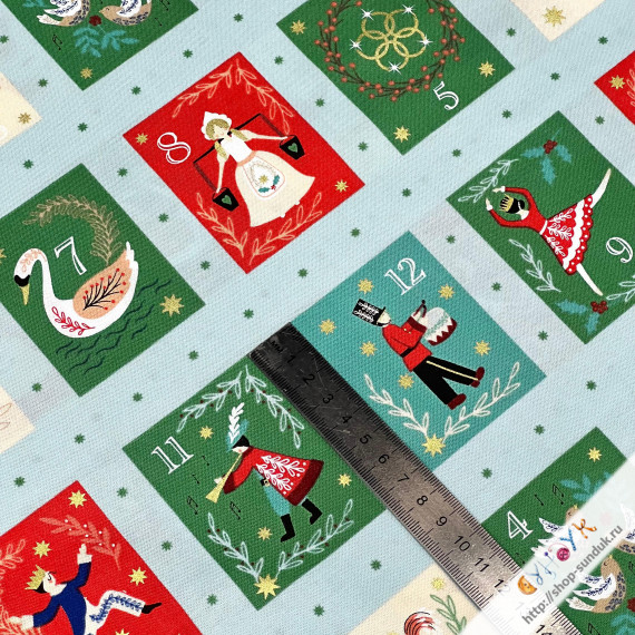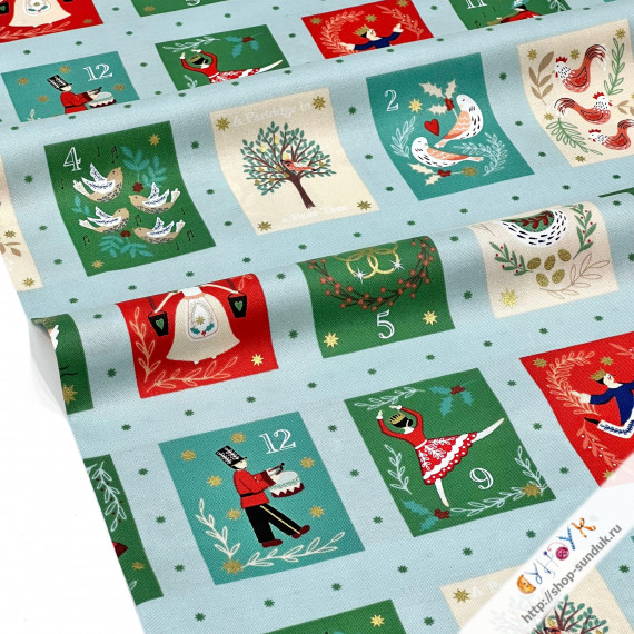 Купон американского хлопка с золотом "The 12 Days of Christmas"