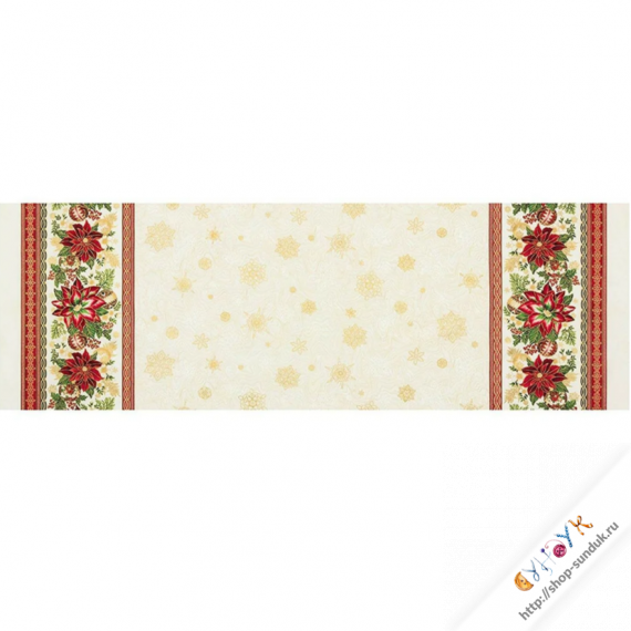 Отрез ткани можно использовать для изготовления праздничной дорожки на стол, декоративных подушек на диван и кресло, пошива подарочных мешочков и пр.