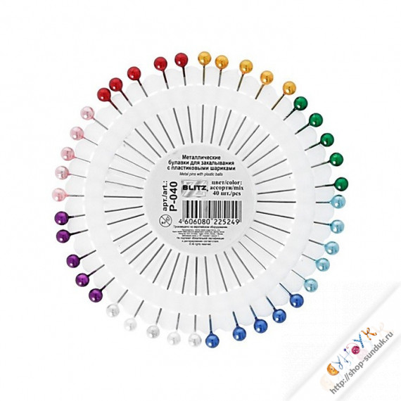 Иглы для закалывания с декоративными головками в форме "шарика". Предназначены для соединения деталей изделия, прикалывания выкроек, для закалывания, наметки при шитье и крое, а также в техниках пэчворк и квилтинг.
