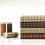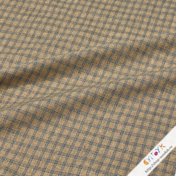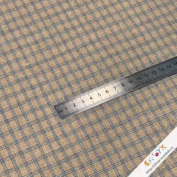 Хлопок фактурный "Клетка" бежевая с голубым