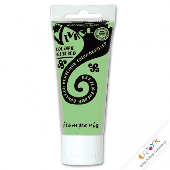 Густая акриловая краска, на водной основе. Из-за насыщенного пигмента не выцветает при высыхании. Краска обладает высокой укрывистостью. Достаточно одного слоя для качественного покрытия. При нанесении в два слоя перекрывается даже темная основа. Наносится кистью или спонжем. Для качественного покрытия нанесите краску первым тонким слоем, дайте ей просохнуть и повторите еще одним слоем. Так как краска довольно густая, то ей удобно создавать рельеф с помощью трафаретов, делать пастозные мазки на работах. При высыхании становится яркой и блестящей. Упаковка в виде тубы позволяет краске храниться долго без высыхания. Не хранить при температуре ниже 0°С. Избегать попадания прямых солнечных лучей и тепловых излучений. Объем: 60 мл Италия