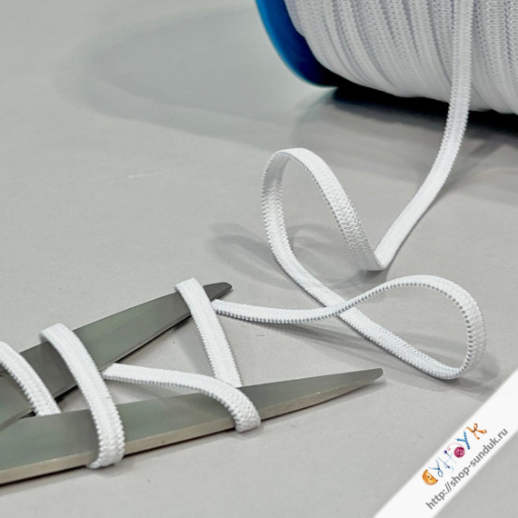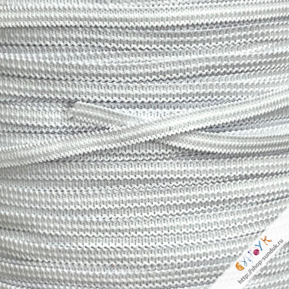 Вязаная резинка, изготовленная с применением латексной нити с оплеткой из полиэфирных волокон. Ширина 4 мм Состав 70% полиэстер, 30% латекс Цена указана за 1м