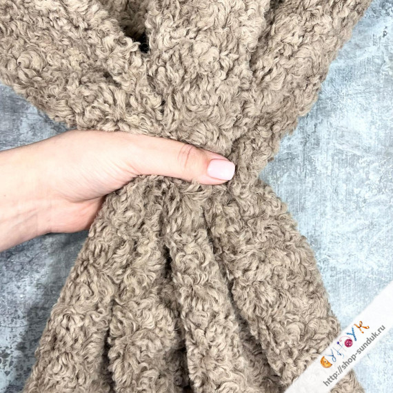 Размер отреза 50х80см (меньше не хватит на медведя) Искусственный кудрявый мех, визуально похожий на мохер, на очень мало растяжимой основе из полиэстера. Основа не такая плотная, как у немецкого мохера, но почти не тянется.