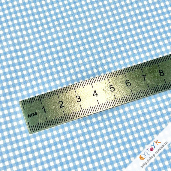 Корейский тонкий хлопок "Мелкая клетка" голубой 10см