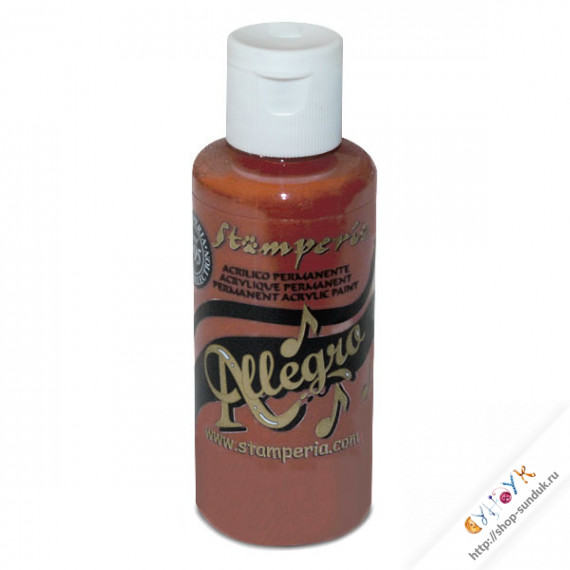 Акриловая краска на водной основе. Используется на любых поверхностях: дерево, фанера, МДФ, картон, пластик, стекло, металл, ткань, кожа. Для устойчивого покрытия перед применением советуем покрыть заготовку соответствующим грунтом. Для плотного покрытия краска наносится в два слоя, кистью или спонжем. При высыхании становится матовой. Идеальна для рисования и любых декоративных работ. Не рекомендуется хранить и транспортировать при температуре ниже 0 С, а также вблизи отопительных приборов; избегать попадания прямых солнечных лучей! Акриловая краска ALLEGRO содержит специальный состав, замедляющий высыхание. Если вы увидели прозрачный слой жидкости над слоем краски – это прозрачный акриловый медиум, консервирующий пигмент на долгий срок. Необходимо несколько раз энергично встряхнуть пузырек, чтобы перемешать состав с краской. Обладает высокой степенью укрывистости и подходит для всех поверхностей. Не хранить при температуре ниже 0°С. Избегать попадания прямых солнечных лучей и тепловых излучений. Объем 59мл Италия