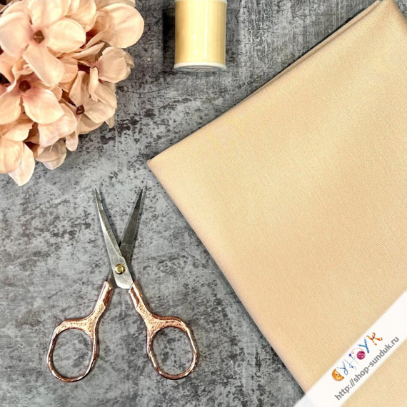 Размер отреза: 40х80см Плотность: 340 г/кв.м Состав: 65% вискоза, 30% полиэстер, 5% спандекс Цвет: бежевый Имеет растяжение по обоим направлениям