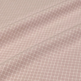 Хлопок фактурный "Клетка средняя" белая на розовом