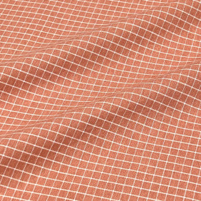 Хлопок фактурный "Клетка средняя" белая на светлом лососе