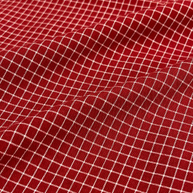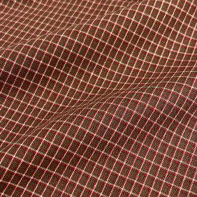 Хлопок фактурный "Клетка средняя" бело-красная на кофейном