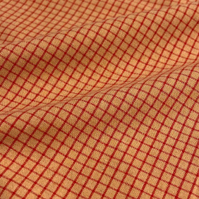 Хлопок фактурный "Клетка средняя" красная на персиковом