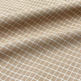 Хлопок фактурный "Клетка средняя" белая на бежевом